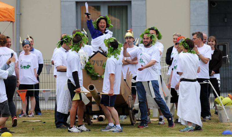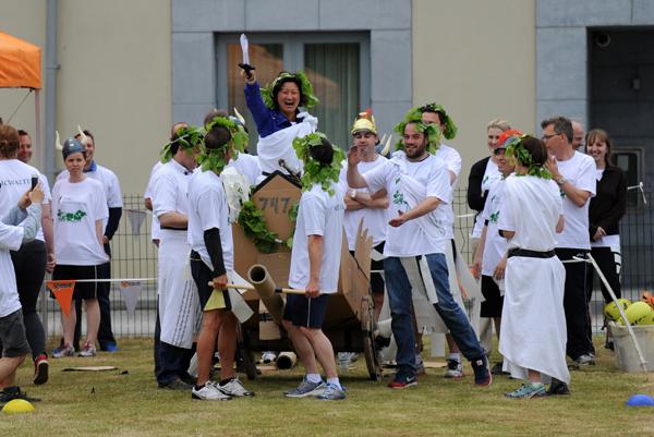 In Flat Out - Chariot Challenge teams build a full scale Roman or Celtic chariot. Working from supplied plans, teams turn a ‘flat-pack’ kit of materials into the ultimate cardboard racing vehicle - machine and human-power working in harmony. The challenge concludes with a race, where the teams pit their chariots against each other in a test of speed and skill, or a gladiator-themed parade in an atmosphere to rival that of the Circus Maximus.